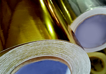 Filme de poliéster prata, ouro e transparente auto adesivo com adesivo acrílico permanente a base de água.