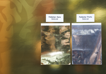 • Para emblemas impressos em serigrafia de aspecto metálico prata, ouro e transparente para identificação de máquinas e equipamentos. Todos os poliésteres mencionados possuem resistência a temperatura aproximada de 10º C à 40º C antes da impressão e, após aplicação, possuem uma resistência aproximada de 150º C.